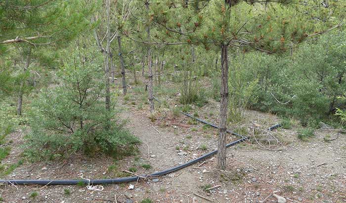 La sécheresse étant un problème endémique en RAT, il a fallu mettre en place un système de pompage depuis le Yarlung ou son affluent, la Kyichu, pour arroser les jeunes arbres. Des canalisations ont été installées le long des pentes et, à partir de grands réservoirs construits au sommet des collines, un système de goutte-à-goutte humidifie la terre au pied des jeunes plants. Pour alimenter le pompage en énergie, l’électricité est fournie par des panneaux solaires installés à proximité.